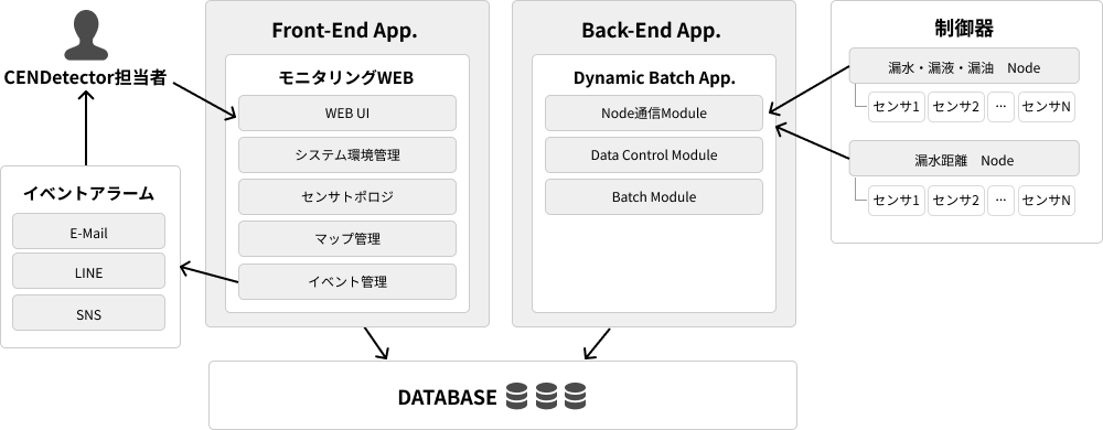 産業現場の設備及び建物などで発生する漏水、漏液、漏油に対してリアルタイムで正確に発生場所まで、モニタリングする