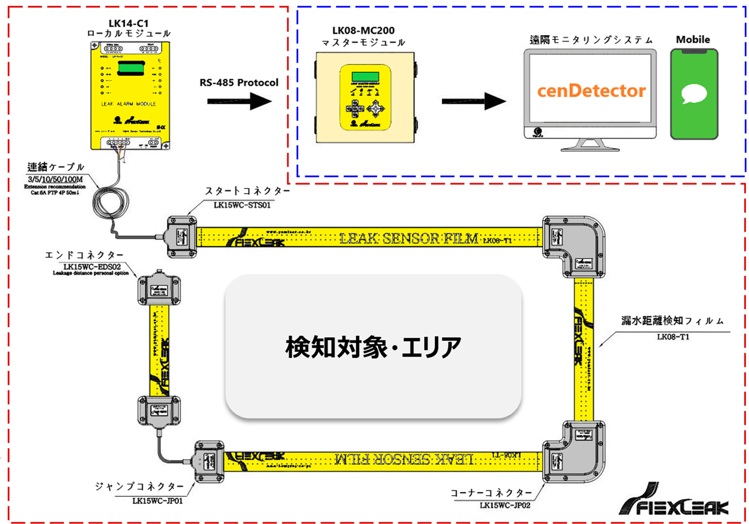 すでに完備されている環境でも、フィルムリークセンサーを設置することで可視化させること、そして専用の遠隔モニタリングシステム(cenDetector)で離れた場所からいつでも漏液状況を確認できます。